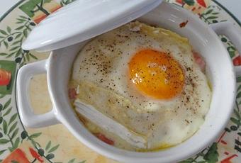 Placer les cocottes dans un four à 200°C quelques minutes, le temps de réchauffer le tout et que l'oeuf soit cuit façon "oeuf sur le plat". Servir aussitôt.