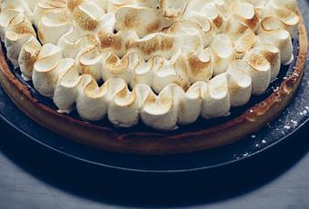 A la poche à douille, décorez le dessus de votre tarte. Pour cette forme, j'ai utilisé une douille à Saint-Honoré. Colorez la meringue au chalumeau (cette étape n'est pas indispensable, car la meringue italienne est cuite par le sirop pendant la préparation).