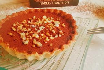 Pour la finition : vous pouvez saupoudrez la tartelette de cacao puis disposer quelques éclats de noisettes caramélisées ou bien décorer la surface à l’aide du nappage au chocolat.