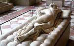 Quand on se promène parmi les antiquités Grecques et Romaines au rez de chaussée de l'aille Sully, dans la salle des Caryatides on voit au fond cette statue qui semble reposer sur un matelas moelleux. En s'approchant on découvre un jeune fille nue, allongée sur le ventre, qui nous offre "la plus jolie paire de fesses du musée" l'expression n'est pas de moi, mais j'avoue quelles sont en effet bien jolies. En s'approchant et en tournant, une surprise nous guette. Notre "jeune fille" possède un sexe masculin bien évident d'autant plus qu'il est en érection. Cet "hermaphrodite endormi" est une des attractions du musée, l'oeuvre a même été entourée d'une barrière pour la protéger des nombreuses mains baladeuses qui se laissaient tenter. Je pense d'ailleurs que sa reproduction aurait un certain succès dans la "galerie tactile".