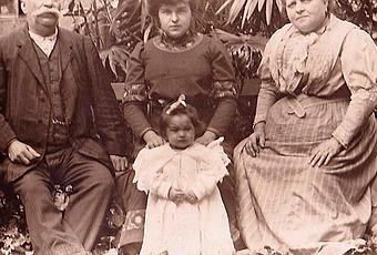 Pierre-Sébastien Bertrand (1855-1917), son épouse Lucie Leone, leur fille Madeleine et leur petite-fille Lucienne vers 1911. (Collection Patricia Jalade-Ricci.)