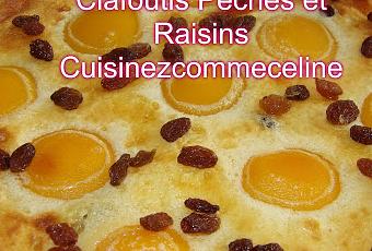 1 boîte de pêches au sirop2 œufs + 2 jaunes 130 g de sucre cassonade70 g de Maïzena40 cl de crème liquide entière100 g de Raisins secs + pour la décorationRéalisation: