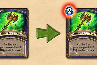 L'arme croque-roc est la première du lot, elle vous coûtera désormais 1 cristal de plus et retardera ainsi la combo dévastatrice avec le marteau du destin qui pouvait infliger jusqu'à 16 points de dégâts au tour 7, un finish sans doute jugé trop puissant.