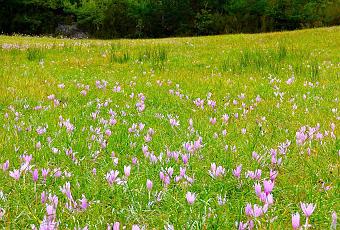 Ces fleurs qu'on surnomme "le safran des prés" ornent l'herbe de leur rose éclatant...
