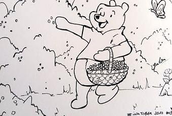 Alors que Winnie, en fait il ramasse juste du miel en général... mais bon, pour cette fois on va dire qu'il cueille des myrtilles pour faire de la confiture.