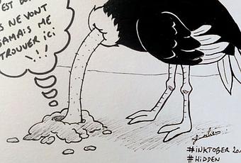 Et puis j'ai pensé à l'autruche, et à la fameuse expression "faire l'autruche", quand elle met la tête dans le sol en espérant qu'on ne la voit pas et qu'on la confonde avec un arbre peut-être.