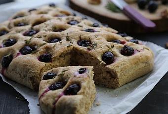 Les semaines passent trop vite et voilà déjà le week end où on a le temps de se poser de voir ses amis , et de partager une délicieuse focaccia au romarin et aux raisins . Elle est moelleuse , parfumée , un régal .J'ai décidé de la farine avec de la farine complète mais vous pouvez la faire avec de la farine blanche si vous préférez mais réduisez très légèrement la quantité d'eau ....