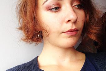 Avec le pourpre irisé qui se trouve à côté, j'ai creusé et assombri le dernier tiers de ma paupière mobile. Pour plus d'intensité, avec un pinceau plus précis j'ai effectué le même geste mais cette fois-ci avec un fard pourpre identique et mat.