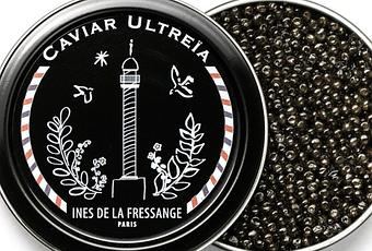 Du côté de la Maison Inès de la Fressange Paris, on a voulu « évoquer Paris, la mythique Place Vendôme et beaucoup de douceur pour un caviar raffiné et festif, à déguster au Salon Privé Caviar Ultreïa et partout où l’envie vous saisira ».