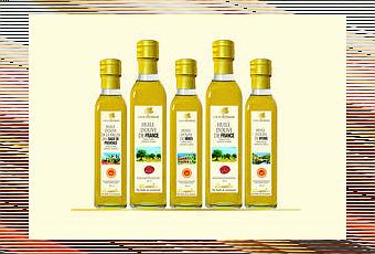 Ce sont des variétés d'olives exceptionnelles (Picholine, Négrette, Noirette...) qui entre dans la composition de cette huile d'olive. Elle développe des arômes d'ananas et de prune jaune, une pointe d'amertume en bouche et une légère ardence.