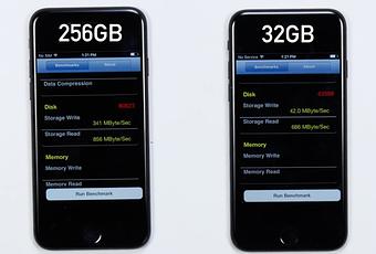 Il y a un détail qu’Apple ne dit pas au sujet de son nouvel iPhone : la vitesse d’écriture du modèle de 32 Go est significativement moindre que celle de 128 ou 256 Go.