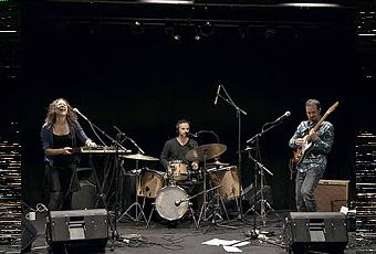 Mardi 18 octobre 2016, Jazz sur son 31. Sous le chapiteau de l’Automne club où se faufile encore la lumière du jour finissant, des clochailles résonnent doucement dans le silence quand Leila Martial, Pierre Tereygeol et Eric Perez entrent par la porte du fond. Au milieu, la batterie et de part et d’autre la chanteuse et le guitariste : la musique sera donnée par une symbiose de leurs découvertes, de leurs imaginaires, de leurs audaces.