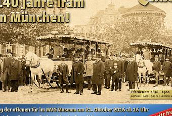 Am 21. Oktober 1876 rollte die erste Trambahn durch München, damals noch von einem Pferd gezogen. Genau 140 Jahre später feiert die MVG dieses Jubiläum bei einem "Tag der offenen Tür" im MVG Museum. Ab 16 Uhr öffnet das Museum seine Pforten für Besucher.