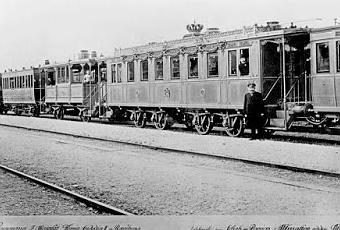 On ne connaît pas de photographie de la mise en service du train royal pendant le règne du Roi Louis II de Bavière. Cette prise de vue date de 1889, lorsque le train royal fut mis à la disposition du Schah de Perse, Naser al-Din Schah ( Nasreddin Schah und Nasr-ed-Din, ناصرالدین شاه ), au cours de son séjour bavarois, dans le cadre de son dernier voyage européen.