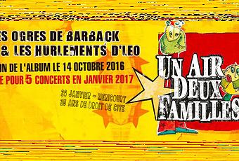 L'annonce n'est pas passée inaperçue auprès des fans des Ogres de Barback et des Hurlements d'Léo. Leur rencontre en 2001 avait donnée lieu à un spectacle magique, un album live et un dvd sous le très célèbre nom d'UN AIR DEUX FAMILLES. Nostalgiques de cette période, les artistes ont été piqués par l'envie de remettre le couvert.