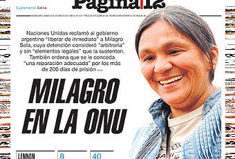 Le groupe de travail sur la détention arbitraire des Nations Unies vient de transmettre au gouvernement national argentin un avis de libération immédiate de la députée, qui, au moment de son arrestation, était restée quinze jours sans aucun appui de personne dans son propre mouvement, pourtant mobilisé dans un seating, sur la place centrale de San Salvador de Jujuy. Le groupe de travail dit qu'il n'a pas été convaincu par les éléments du dossier qui lui ont été transmis par le gouvernement argentin. Il parle de violation des droits de l'homme et même d'indemnités à verser à la détenue à libérer.