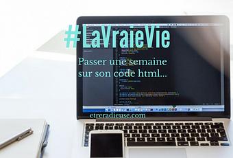 Dans le type La Vraie Vie, je vais vous donner un aperçu des coulisses de mon blog. Le code HTML! Le code HTML fait partie de la programmation de mon blog. Je ne suis pas programmeur informatique ou web, donc inutile de me demander comment je fais. J'ai quelques bases assez suffisantes pour régler les petits problèmes de mon blog. Lorsque je n'ai pas la réponse, je google ma question. Je le comprends vaguement, mais je ne le parle pas couramment. Le HTML est un langage codé, issu de l'univers informatique et du web. Je m'amuse à faire des </> . Par contre des fois faire du code HTML c'est une vraie corvée. Faire la programmation complète d'un site ou d'un blog par exemple... Et parfois qui dit programmation égale bris et bobos dans le code HTML! Je suis pratiquement seule sur mon blog. En fait pour la partie technique. Je gère de A à Z tout ce qui est technique. La semaine dernière, j'ai pris une semaine à essayer de trouver les bobos sur mon code HTML pour finalement créer un nouveau bobo! Alors j'ai mis en péril mon blog à ne pas écrire.