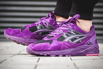 La marque japonaise aime présenter ses modèles dans des constructions inédites toujours très colorées à l’image de la dernière collaboration avec Atmos sur la Gel Lyte 3. C’est aujourd’hui au tour de la Gel Kayano Trainer initialement sortie en 1993 d’être présentée dans une construction entièrement en suède violet associée à un panel en mesh noir. La paire repose sur une midsole présentée dans une teinte plus foncée disposant d’une outsole rose sur la partie arrière de la chaussure. Le célèbre logo Asics est quant à lui présenté en violet et noir servant d’attache à des lacets de la même couleur que l’upper.