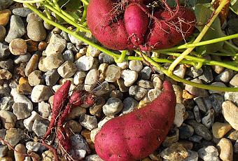 Comme le temps se rafraîchit de plus en plus, je me suis décidé à récolter mon pied de patate douce (variété blanche).