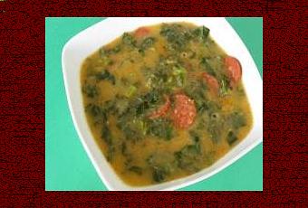 Préparer les légumes: Peler les pommes de terre et les couper en morceaux d'environ 3 cm de côté hacher finement l'oignon et l'ail; bien laver et essorer les feuilles du chou, puis les trancher en fines lanières (le plus fin possible). Couper la moitié du chorizo en petits dés et le reste en rondelles. Réserver.