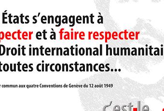196 Etats ont signé ce droit et se sont engagés à le respecter et à le faire respecter en toutes circonstances. Force est de reconnaître que cette obligation demeure toujours mal remplie à l’aune des conflits contemporains… Le Droit international humanitaire fait partie du Droit international public, du Droit des gens, c’est à dire du nôtre. S’en sentir individuellement dépositaire fixe une responsabilité à chacun d’entre nous : rappeler aux Etats mais également à tous les acteurs des conflits contemporains les engagements qui ont été pris.