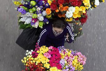 La photographie présentée fait partie de la série intitulée Vendors from Above. Elle s'est placée sur des ponts de la ville de Hanoi et a saisi vu d'en haut les vendeurs ambulants à vélo.