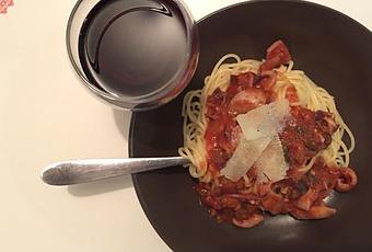 Servir chaud sur les pâtes tout juste égouttées avec des copeaux de parmesan.
