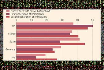 Ce qui est peut-être plus inattendu, c'est que la seconde génération d'immigrés, partout sauf en Allemagne, serait plus diplômée que la population déjà installée. Ce qui semble aller à l'encontre d'une idée reçue.