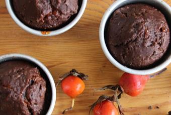 Depuis que je suis arrivée en Allemagne, j'entendais souvent parler de "Hagebuttemarmelade", "Hagebuttesirup" . Un peu comme "Holunder" (le sureau), et le "Sanddorn" (argousier) cela semblait être le dernier truc à la mode. Comme vous vous doutez bien que "Hagebutte" ne faisait pas partie de (maigre) vocabulaire que j'ai appris en cours d'allemand, j'ai donc questionné un collègue calé en botanique (et en français), qui m'a appris qu'il s'agissait du cynorhodon. Ce qui ne m'a pas beaucoup plus avancée, dans la mesure où je n'avais absolument aucune idée de ce à quoi pouvais bien ressembler du cynorhodon! Ce n'est qu'en poussant un peu les recherches sur Internet que j'ai découvert que derrière ce patronyme un peu barbare se cachait ni plus ni moins le gratte-cul de mon enfance! En effet, il faut savoir, que lorsque nous nous promenions fin août avec ma grand-mère et que nous croisions ces petites baies oranges, elle nous racontais toujours qu'il s'agissait de gratte-cul, et que l'on en tirait le poil à gratter, ce qui ne manquait pas de nous amuser (et elle avec, je le soupçonne!). C'est aussi d'elle que je tenais que l'on pouvait en faire de la confiture et j'avais toujours voulu essayé. Aussi, lorsque j'ai vu que ma propriétaire en avais dans son jardin, ni une, ni deux, je me suis lancée! Et comme je ne consomme pas vraiment de confiture, j'ai eu ensuite l'idée de m'en servir pour de petits muffins gourmands!