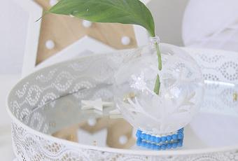 Une fois les perles de votre support bien sèches, il vous faut une boule de Noël que vous allez transformer en vase.Je crois que c'est un des DIY les plus simple que je n'ai jamais fait.Il suffit juste d'enlever le petit crochet au dessus de la boule , de la remplir avec un peu d'eau et d'y glisser votre plante ou votre fleurs !