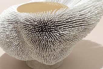 Les tables d’appoint sont composées de simples tiges de bois de hêtre ayant été au préalable sablées, puis coupées, assemblées et enfin laquées. Pia Maria Raeder créé des sculptures, des « Sea Anemone », étant fonctionnelles mais également raffinées, aux évocations biomorphiques. Chaque œuvre est unique de par sa réalisation à la main. En effet, plus de 400 heures de travail et environ 16 000 tiges de hêtre ont été nécessaires pour réaliser l’installation « Sea Anemones – White ».