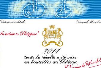 David Hockney était un ami personnel de la Baronne Philippine de Rothschild, disparue en 2014, et à laquelle son dessin rend hommage. Entourés de rayons, signes à la fois d’émotion et d’émerveillement, deux verres, l’un vide et l’autre plein, nous racontent l’attente fébrile puis le miracle toujours recommencé de la naissance d’un grand vin : Château Mouton Rothschild, dont la Baronne Philippine fut si longtemps la bonne fée.