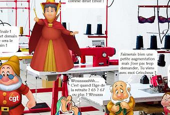 Dans un pays imaginaire plongé en plein réel, la compagnie des fées sent son corps occis, mort. Les dames des contes de fée ont des comptes défaits et le dépôt de bilan n’est pas loin. La compagnie des fées, malgré tant de vicissitudes liées à une conjoncture déprimée, ne perd pas espoir et s’accroche à ses baguettes quand bien même le pouvoir magique se réduit à un simple effet placebo. Pour autant, Mélusine Henroute, la fée supérieure, y croit. Elle pressent un retournement de la situation. On parle d’aides de l’état et surtout les taux à long terme accusent une chute sans pareil. Il est peut-être tant d’emprunter pour augmenter le capital : ah, vous aimez les taux, fées ! Ces prévisions optimistes ont le mérite de booster toute la compagnie qui commence par se transformer en SARL. On installe un organigramme précis et efficace. Mélusine, gérante, nomme deux sous-fées dont la principale charge sera de négocier avec un gouvernement formé de mages. On effectue un brainstorming pour décider ce que les sous fées offrent aux mages : débours sains permettant de compter sur roc fort ! Résultat : la société des fées rachètera une manufacture textile qui périclite. Il s’agira de prouver qu’elle est capable de maintenir l’emploi tout en évitant l’invasion des capitaux chinois. L’état gère à partir de petits locaux situés dans des abers. L’odeur de l’amer imprègne les ans bruns des services déconcentrés. On oriente les deux sous-fées vers le local des aides à l’économie : - L’économie ? Cet aber ci ! Nul répit pour admirer la mer, point d’instant d’extase devant les remous salins : il faut faire vite ! Les deux sous-fées exposent leur plan de bataille : montant de l’aide requise, stratégie de relance qui s’appuie sur une segmentation plus restreinte du marché : les dessous chics, de luxe. Le mage qui rend au mage au keynésianisme voit d’un bon œil cette relance de l’activité textile sous l’impulsion des aides étatiques et soutient gorge chaude. Il fait parapher par fées un contrat parfait : aide de l’état et prêt bonifié contre maintien de main d’œuvre. Le combat commence. Le scepticisme envahit les ouvriers : est-ce que cette compagnie crée mieux et a les vivacités (Halévy va citer ?) pour faire de nouveaux paris ? Or fées osent en faire ! La production des dessous a le dessus sur la concurrence. La crainte initiale de ne pas voir dans les fées la capacité de supporter des faix se défait : plus jamais la présence de fées n’est hantise ! La gamme « trop-fée ! » gagne des parts de marché ! La concurrence décline et des efforts faits par ces fées paie les forfaits. Mélusine rachète la concurrence et crée de nouvelles fabriques. C’est alors que l’état décide de donner un coup de pouce à l’intégration des handicapés dans les entreprises. Un quota de 6% de travailleurs handicapés (par rapport à l’effectif total) est exigé. A défaut, l’entreprise devra verser une amende à l’"âgé flippe", une association qui vient en aide aux seniors sans travail. La sous-fée Elvire Jamépersone, la plus laide des deux mais néanmoins (nez en moins) DRH de service, se plie à la nouvelle règle. Elle embauche des nains (le nanisme étant répertorié dans la liste des handicaps) et les forme avec bienveillance. L’histoire se termine donc par ce très navrant calembour :