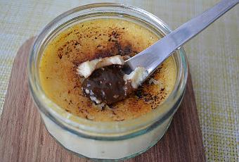 A la maison on adore les crèmes brûlées. C'est un dessert simple et rapide à réaliser et qui devient encore plus gourmand si on y cache une petite boule de ganache au chocolat noir...