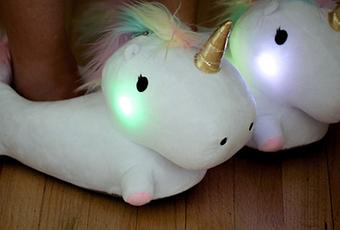 #1. Le chausson lumineux licorne.Désolée pour vous, mais visiblement la mode licorne n'est pas près de s'arrêter en 2017. Qu'on se le dise une fois pour toute, les licornes on n'en aura jamais assez ! " Donne-moi-z 'en " en chaussettes, tshirts, bijoux, sacs, mugs.