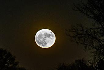 La super lune vue à Deux-Montagnes entre 17 h et 18 h, sur la berge de la(photo © Marie-Andrée Côté)
