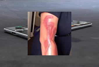 « J’ai récemment acheté un iPhone 7 d’Apple et me suis accidentellement endormie avec mon bras sur mon téléphone pendant qu’il chargeait. J’ai été réveillé par une douleur soudaine, comme des épingles et des aiguilles, et un engourdissement (…). Ceci est une photo de ce qui arrive lorsque l’on dort avec son téléphone pendant sa recharge. S’il vous plaît, faites attention…