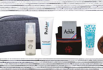 Dans cette jolie trousse effet tweed, en plus d'une paire de chaussettes de la marque Achille et d'un abonnement de 3 mois au magazine GQ, vous découvrirez :