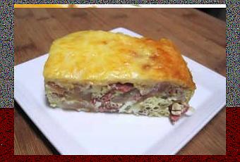 Cherchez un saladier, mettez dedans les œufs, battez-les en omelette assaisonnez puis ajoutez les oignons et lardons.