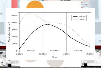 La recherche a suivi 92 volontaires avec et sans diagnostic d’Alzheimer, suivis à Alzheimer’s Disease Center de l’Université du Kansas, équipés d’accéléromètres pendant une semaine. Les chercheurs ont pu suivre ainsi l’activité physique des participants tout au long de la journée mais aussi identifier les cycles de sommeil perturbés. Leur analyse constate que les participants atteints de la maladie d’Alzheimer ont des profils quotidiens d’activité différents vs les participants en bonne santé.