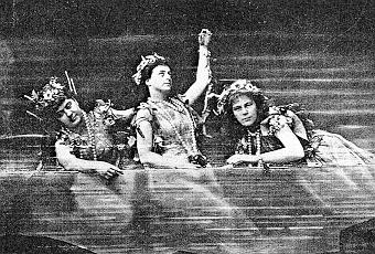 Dès 1886, Adolphe Jullien expliquait et illustrait dans son ouvrage Richard Wagner, sa vie et ses oeuvres (...)*, le fonctionnement de la machinerie qui permettait aux Filles du Rhin de chanter tout en donnant l'illusion de nager.