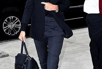 La bombe qui se dénudait il y a peu pour Burberry avait opté pour une combinaison composée d’un pantalon bleu nuit, d’un top noir et d’un blazer de même couleur. Son pantalon à une coupe 7/8e, une longueur très en vogue chez les stars. Quant à son top, il a des manches longues, un col roulé et reste décontracté. Pour parfaire maintenant son style, elle y a ajouté un blazer proche du corps, qui ranimait l’éclat de sa parure. Rosie Huntington-Whiteley était tout simplement sublime, et n’a pas hésité à accompagner sa combinaison d’accessoires chic pour davantage d’apparat. Ses cheveux étaient rabattus en side hair de façon aussi négligé que sexy. La star portait des escarpins ouverts noirs et tenait un sac à main bien assorti à sa tenue. Elle a insisté davantage sur le noir en optant pour des verres fumés.