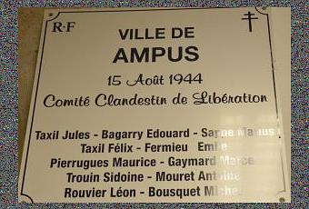 Ce panneau a été offert en 2010 par le Conseil Général du Var à toutes les communes du département : il s’agissait de rendre hommage à ces habitants qui avaient constitué le groupe chargé de gérer durant quelques mois (en 1944) les affaires communales. Après Pétain, tous les conseils municipaux avaient été dissous et pour les remplacer (en attendant les élections municipales constituées, chaque commune devait choisir quelques représentants pour s’occuper des affaires courantes. Ce comité clandestin de libération mérite hommage et reconnaissance : bravo à Ampus de souligner officiellement cet épisode de la vie du village et de faire acte de mémoire du patrimoine historique de la commune.