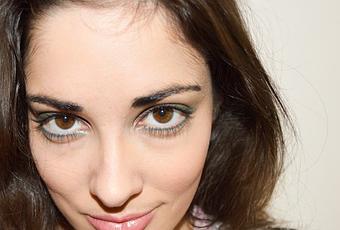 J’ai opté pour un maquillage très simple et exécuté uniquement avec la Vice 4 d’Urban Decay. Je démarre avec la teinte Robbery, un magnifique vert de gris, que j’applique dans tout le coin interne de la paupière. En guise de transition, j’applique le C-Note, puis la teinte Grasshopper dans le coin externe. En raz de cil inférieur, je trace un trait fin à l’aide de la teinte Arctic.