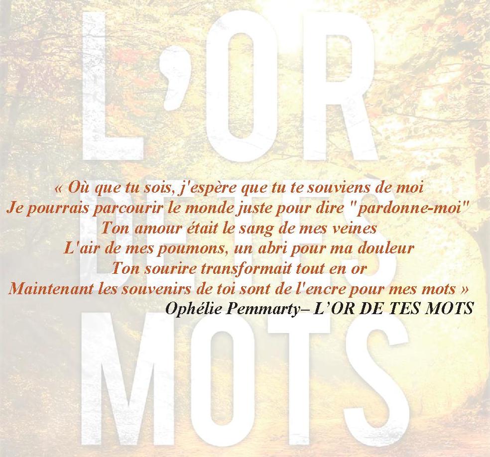 La plume de l'auteur me fascine, elle m’envoûte, je suis totalement sous le charme. Ophélie Pemmarty a cette faculté de m'émouvoir à chaque mot, chaque phrase, elle a ce quelque chose qui fait toujours résonner en moi des émotions, qu'elles soient intenses ou plus légères.Avec son écriture, elle sublime ce roman, elle fait de cet amour un amour unique, intemporel. Au fil des pages, j'ai été émue, j'ai ri, souri, et j'ai été carrément bouleversée lorsque Dominic et Asher se lâchent enfin, lorsqu'ils crient leurs mots d'amour, leurs doutes, leurs blessures, comme on lance une bouée à la mer, en ultime recours, comme une prière, pour sauver cet amour si pur. Quand leurs corps se retrouvent et se connectes, c'est une danse sensuelle qui débute, un accord parfait, sublimé par la férocité et la profondeur des sentiments dégagés. C'est beau, c'est époustouflantTout plein de petites choses, de mots soufflés, de gestes doux, de petites attentions de nos deux hommes m'ont mise la larme à l’œil, tant la sincérité et l'amour, entremêles à la douleur et l'espoir, transparaissent dans ces actions.Bref, plus qu'un coup de cœur pour ce roman tendre, toute en délicatesse et pudeur. Deux personnages auxquels on s'attache très facilement, dont les pensées et les sentiments sont omniprésents et nous indiquent combien ces retrouvailles les bouleversent. Un texte rythmé par la mélodie des doutes et des espoirs, un texte bercé par un amour incroyable. Les pages se tournent toutes seules, nous entraînant en même temps que Dominic et Asher dans ce tourbillon que l'on appelle amour, dans le choc de cette rencontre inopinée, dans cette déferlante de sentiments, de souvenirs qui s'abat sur eux et qui emporte tout sur son passage, comme une tornade, puissance mille.Un immense coup d'amour pour ce roman, dans sa globalité, pour tout ce qu'il représente, pour tout ce qu'il dégage, une histoire forte, des sentiments extrêmes, justes, un thème que j'affectionne, Ed Sheeran que j'adore, des personnages qui ont su me toucher profondément, une chanson bouleversante...tout m'a chamboulée.Je dois vous avouer que je suis tombée amoureuse de la plume d'Ophélie Pemmarty, une plume très belle, poétique, maîtrisée, qui sait jouer avec les mots pour en faire ressortir le meilleur, et je souhaiterais juste te dire une chose Ophélie : c'est toi qui a de l'or dans tes mots.Voici un bout de la chanson d'Asher pour Dominic (traduit par mes soins, donc sorry par avance)