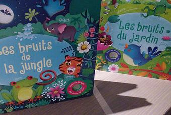 Illustrations : Federica IossaTexte Sam TaplinEditions Usborne Collection Mon livre sonore à toucherJuillet 2016 pour Les bruits du jardinSeptembre 2016 pour Les bruits de la jungle10 pages - 13,50 euros