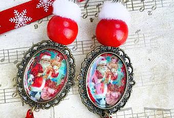Cette année, j'ai donc crée une petite collection de quatre boucles d'oreilles avec des illustrations kitsch et rétro de notre Santa Claus préféré.