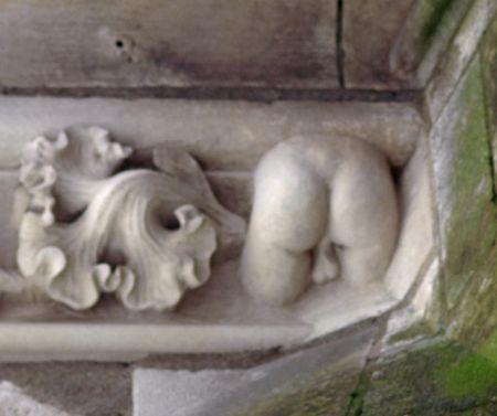 Et quelques centaines de mètres plus loin, très haut sur une paroi de la Cathédrale, dissimulées dans un angle j'ai aperçu cette paire de fesses qui nous nous cachent pas qu'elles appartiennent à un homme.