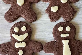 Etaler la pâte (épaisseur 4 à 5 mm), découper à l'aide d'un emporte-pièces en forme de bonhomme et déposer sur une plaque.
