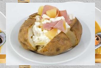 Dans chaque pomme de terre faites couler une c.à.s de crème fraîche puis disposez en dessus une tranche de jambon – entière ou coupée en morceaux.